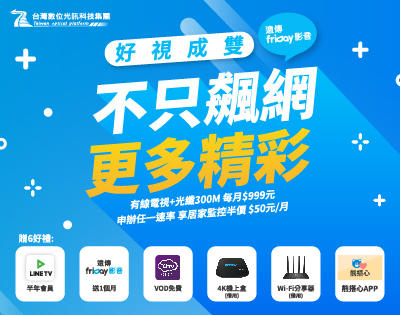 300M對稱網路+有線電視 每月只要999元/月