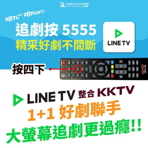為使OTT內容更貼近家庭收視習慣,台數科表示,特別將 LINE TV嵌入「哈 TV+」智慧機上盒,並設定「5555」 定頻頻道,讓使用者僅需按下遙控器即可收看 LINE TV 節目。此舉開創「OTT 頻道化」先例,進一步拉近傳統有線電視與串流平台的使用體驗,展現集團在「內容 × 科技 × 用戶體驗」上的整合實力。